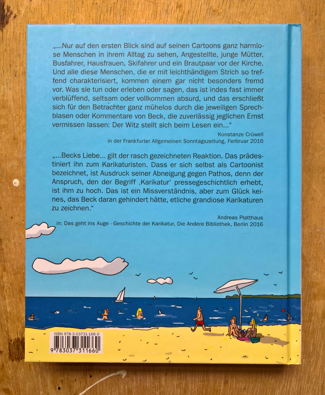die daten: 136 seiten typisch becksche witze, im format 16 x 17,5 x 2 cm, toll hergestellt in tschechien, liebevoll verlegt von der edition moderne in zürich, sehr selten zu finden in buchläden in deutschland, seufz.