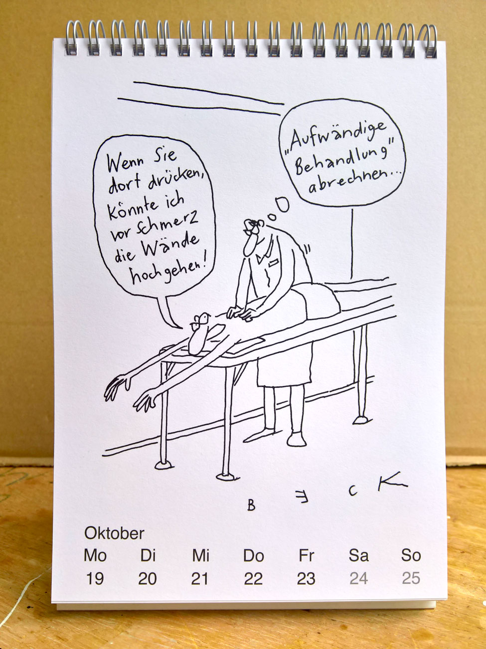 jede woche ein neuer beck-cartoon, klassiker und neue. das ganze im format a5 14,8 x 21 cm mit 58 seiten. das ist unser erster tisch-kalender zum aufstellen. gedruckt auf schön mattem offsetpapier, ganz so wie wir es lieben (kommt außerdem mit einer kleinen verlosung.-)